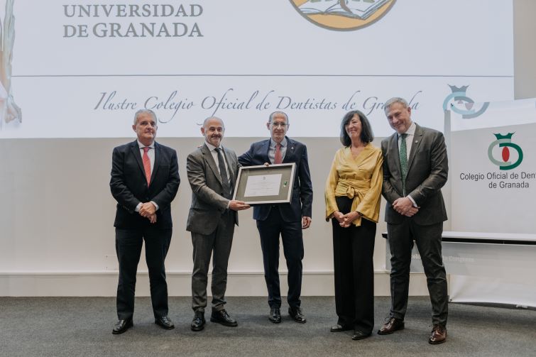 Asimismo, se ha hecho entrega de la Medalla de Oro del Ilustre Colegio Oficial de Dentistas de Granada a la Facultad de Odontología de la Universidad de Granada en reconocimiento a la encomiable labor académica, docente e investigadora que desempeña.