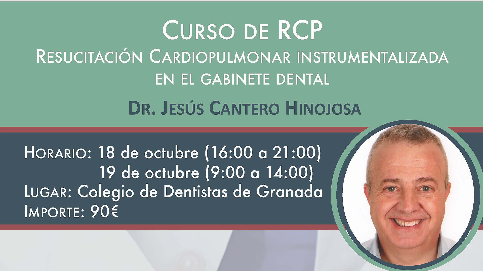 Curso de Resucitación Cardiopulmonar instrumentalizada en el gabinete dental, impartido por el Dr. Jesús Cantero Hinojosa los días 18 y 19 de octubre. Curso abierto a todo el personal de la clínica.