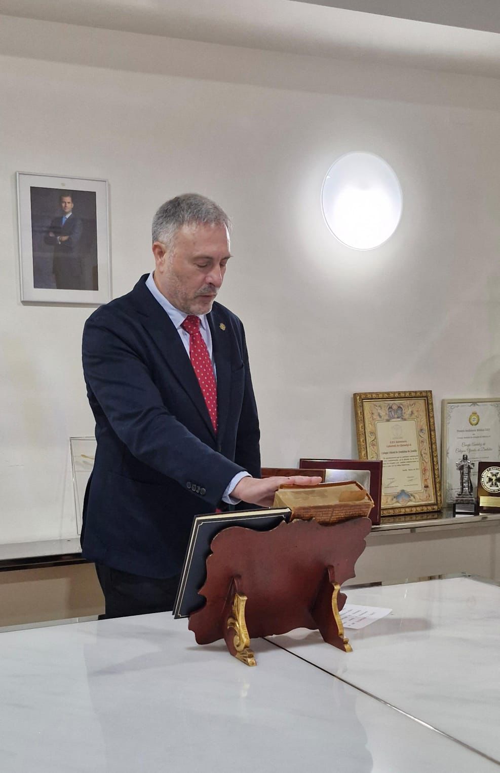 Le acompañan como vicepresidente el presidente del Colegio de Dentistas de Sevilla, el Dr. Rafael Flores Ruiz; el presidente del Colegio de Dentistas de Huelva, el Dr. Víctor Núñez Rubio, como vocal de la comisión permanente; el Dr. Diego Rodríguez Menacho, como secretario, y el Dr. José María Delgado Muñoz, como tesorero.