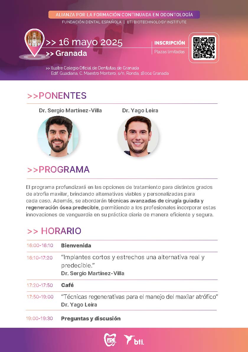 JORNADAS DE ACTUALIZACIÓN DE IMPLANTES CORTOS Y REGENERACIÓN ÓSEA. Organizado conjuntamente por la FDE Y BTI.