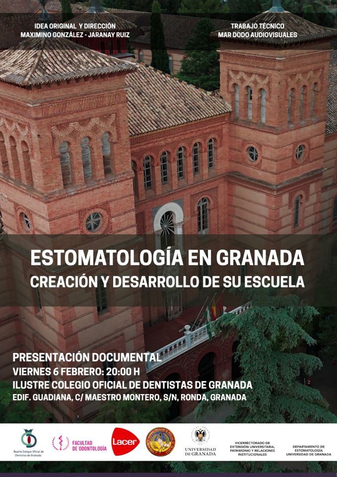 Con motivo de los actos conmemorativos de nuestra patrona, Santa Apolonia, el día 6 de febrero a las 20:00 horas, se presentará y se proyectará en el salón de actos de nuestro Colegio, el Documental "ESTOMATOLOGÍA EN GRANADA. CREACIÓN Y DESARROLLO DE SU ESCUELA", dirigido por el Dr. Maximino González Jaranay- Ruiz.