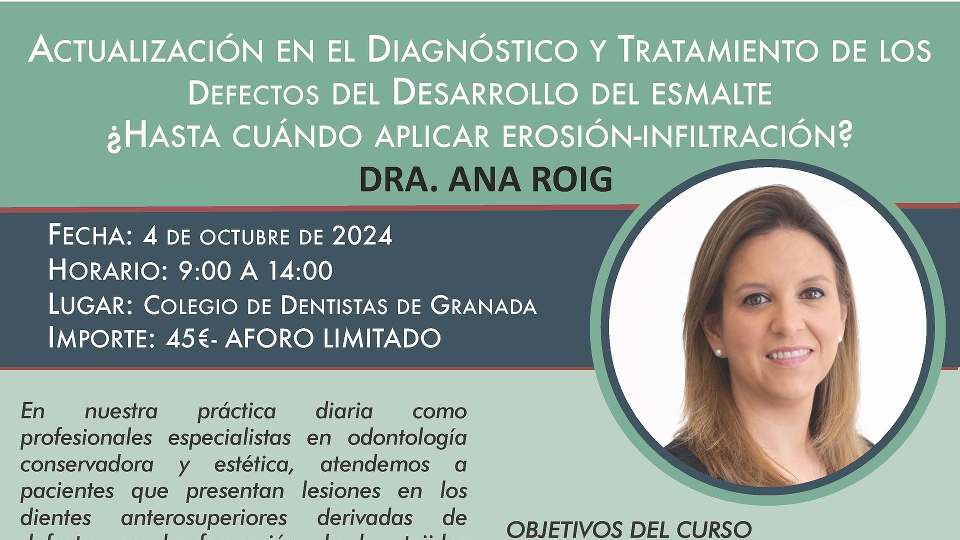 Leer másCurso Teórico - Práctico “Actualización en el diagnóstico y tratamiento de los defectos del desarrollo del esmalte. ¿Hasta cuándo aplicar erosión-infiltración? impartido por la Dra. Ana Roig